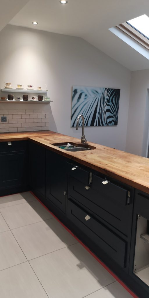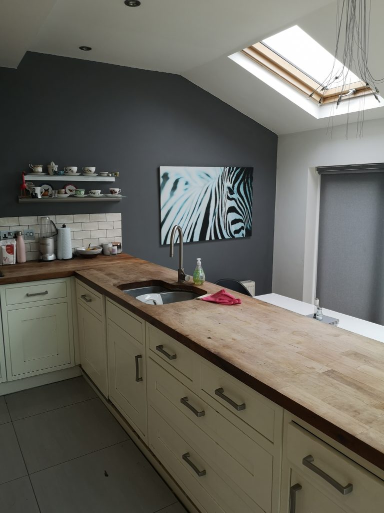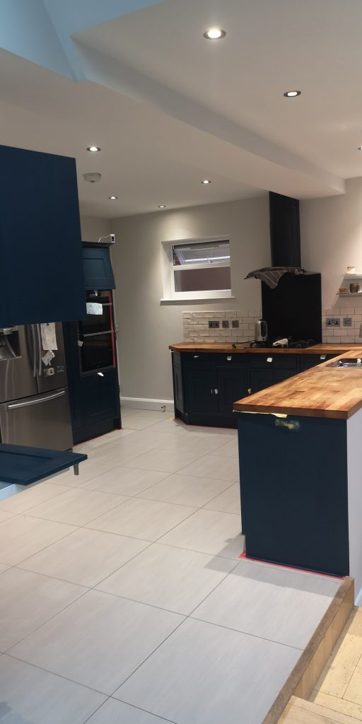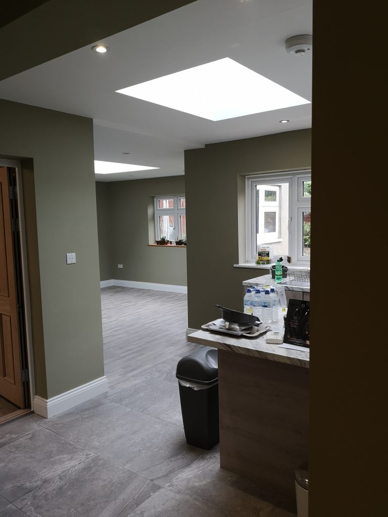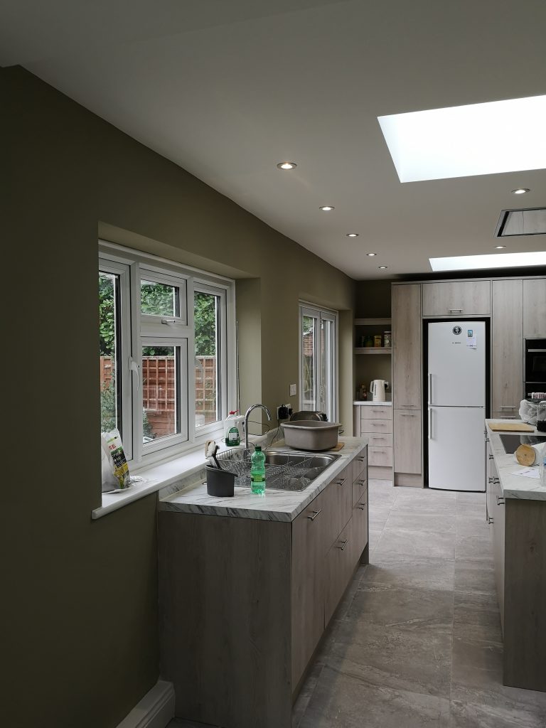 Split the project into two distintive phases to avoid as much disruption as possible to the family. All ceilings, walls and woodwork were completed first leaving the kitchen cabinets for the following week.